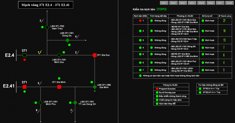 Tổng cộng 48 kịch bản được các kỹ sư SCADA/DMS xây dựng cho 13 mạch vòng trung áp trên địa bàn lưới điện huyện Thủy Nguyên. Trước khi đưa vào vận hành chính thức, các cuộc thử nghiệm đã được thực hiện để đảm bảo chương trình làm việc ổn định, tin cậy.
