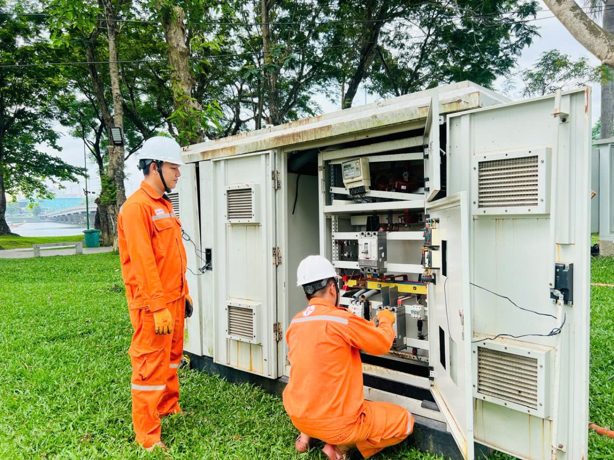 Cụ thể, với dòng tải yêu cầu khoảng 750A, ngành điện đã huy động phương tiện, nhân lực để triển khai lắp đặt 01 máy biến áp (MBA) di động với công suất 400kVA đấu nối từ đầu cực MBA Trần Hưng Đạo 2, hệ thống đo đếm cấp điện và một số vật tư phụ kiện đồng bộ để cấp điện cho các khu vực của sự kiện.