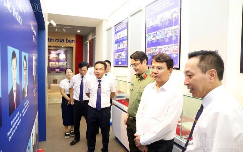| Bí thư Tỉnh ủy Lào Cai và các đại biểu thăm phòng truyền thống của PC Lào Cai |