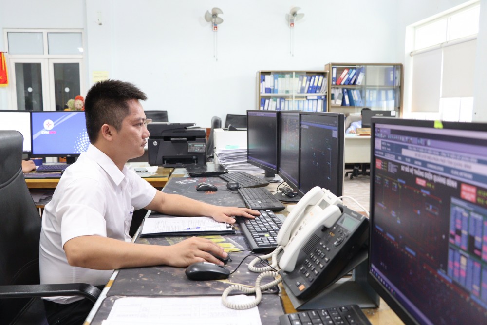 | Trong ca làm việc của anh Hồ Thanh Bình tại Phòng Điều độ Công ty Điện lực Quảng Bình |