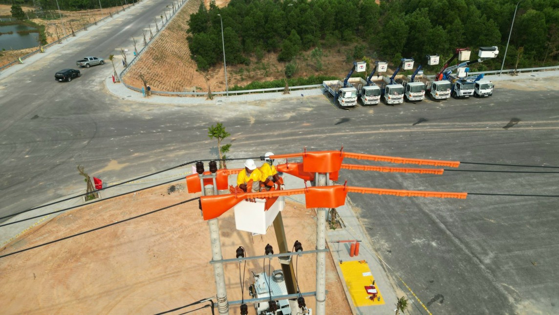 Để kịp thời khắc phục sự cố sau bão, nhanh chóng khôi phục cung cấp điện cho khách hàng, PC Quảng Bình đã huy động lực lượng xung kích tại các đơn vị đến hỗ trợ Điện lực Đồng Hới trong việc khôi phục lưới điện sau bão tại Khu công nghiệp Tây Bắc Đồng Hới. Đội Hotline 2 triển khai công việc tháo, đấu lèo xuống FCO trạm biến áp Khu dân cư Bắc Lý tại vị trí 66/6 thuộc XT 474 Bắc Đồng Hới. Ngay sau đó, Đội xung kích Điện lực Đồng Hới thực hiện thay máy biến áp.