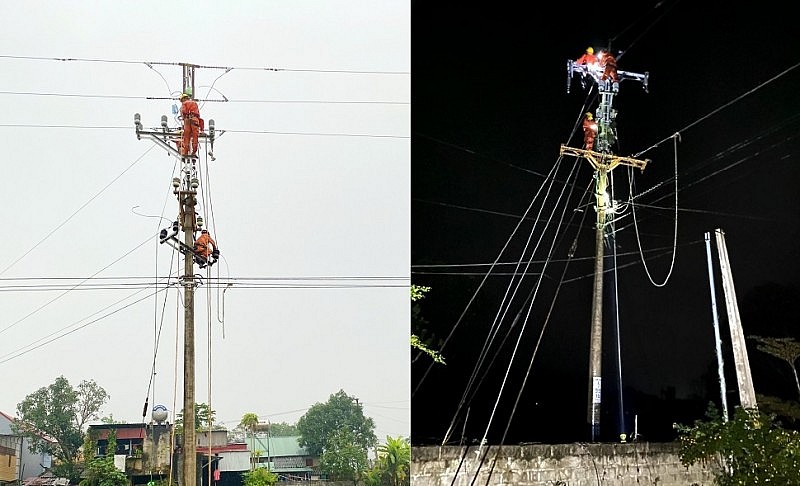 Công nhân các đơn vị trực thuộc PC Thanh Hóa đang xử lý những khiếm khuyết trên lưới để đảm bảo cấp điện dịp Tết 2023 |