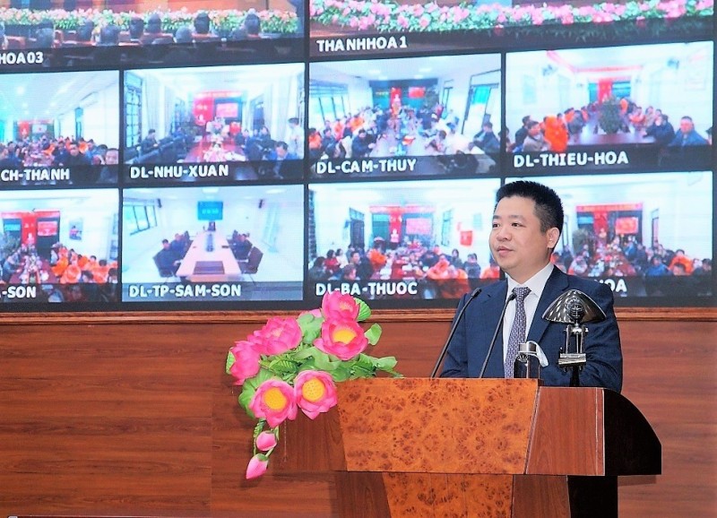 Bí thư Đảng ủy, Giám đốc PC Thanh Hóa Hoàng Thanh Sơn phát biểu chỉ đạo và giao nhiệm vụ tại Hội nghị giao ban đầu năm 2023 |