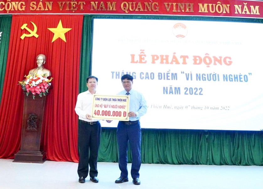 Tại buổi lễ phát động, ông Trần Văn Minh – Chủ tịch Công đoàn PC Thừa Thiên Huế đã thay mặt Công ty trao số tiền ủng hộ 40 triệu đồng trích từ nguồn quỹ Vì người nghèo và đền ơn đáp nghĩa củaPC Thừa Thiên Huế. Qua đó, nhằm chung tay, giúp đỡ người nghèo trong tỉnh Thừa Thiên Huế vươn lên ổn định cuộc sống; chung sức, chung lòng cùng toàn Tỉnh thực hiện thành công chương trình mục tiêu Quốc gia giảm nghèo bền vững.