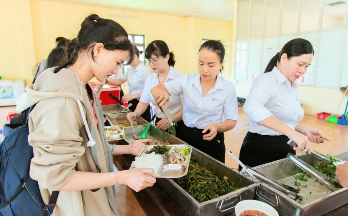 | Nữ công PC Thừa Thiên Huế tham gia phục vụ tại quán cơm. (Ảnh: PC Thừa Thiên Huế) |