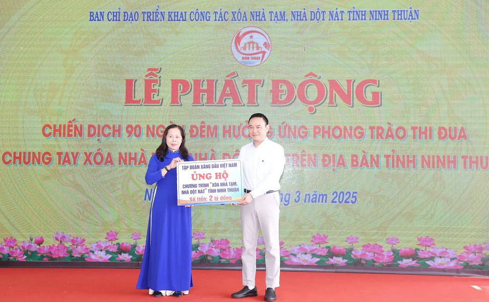 Hưởng ứng phong trào thi đua “Cả nước chung tay xóa nhà tạm, nhà dột nát trên phạm vi cả nước từ nay đến năm 2025”, Tập đoàn Xăng dầu Việt Nam – Petrolimex đã và đang tích cực tham gia và đóng góp vào phong trào ý nghĩa này. Nhân dịp này, Tập đoàn đã ủng hộ tỉnh Ninh Thuận 2 tỷ đồng tại Lễ phát động Chiến dịch 90 ngày đêm hưởng ứng phong trào thi đua chung tay xóa nhà tạm, nhà dột nát trên địa bàn tỉnh.