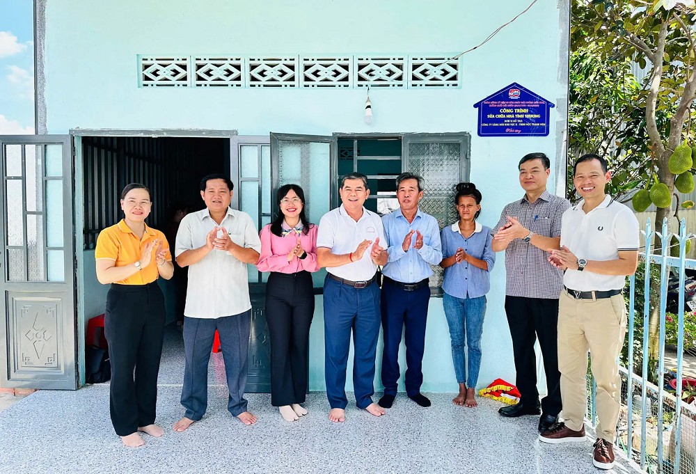 | Bàn giao căn nhà đã được sửa chữa khang trang cho hộ bà Lê Thị Thanh (ngụ tại 144 ấp 31, xã Phước Kiển). |