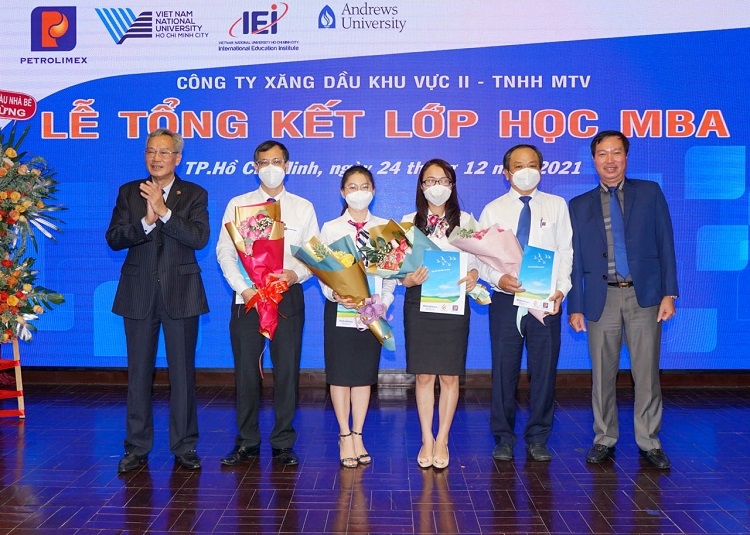 Phát biểu tại buổi lễ, TS. Nguyễn Việt Anh - Giám đốc chương trình MBA Andrews tại Việt Nam thay mặt nhà trường ghi nhận, biểu dương và đánh giá cao sự chỉn chu trong quá trình nghiên cứu và tư duy giải quyết vấn đề thực tiễn của doanh nghiệp cũng như tinh thần học tập vượt khó của cán bộ Petrolimex Sài Gòn trong hoàn cảnh dịch bệnh Covid-19 kéo dài.