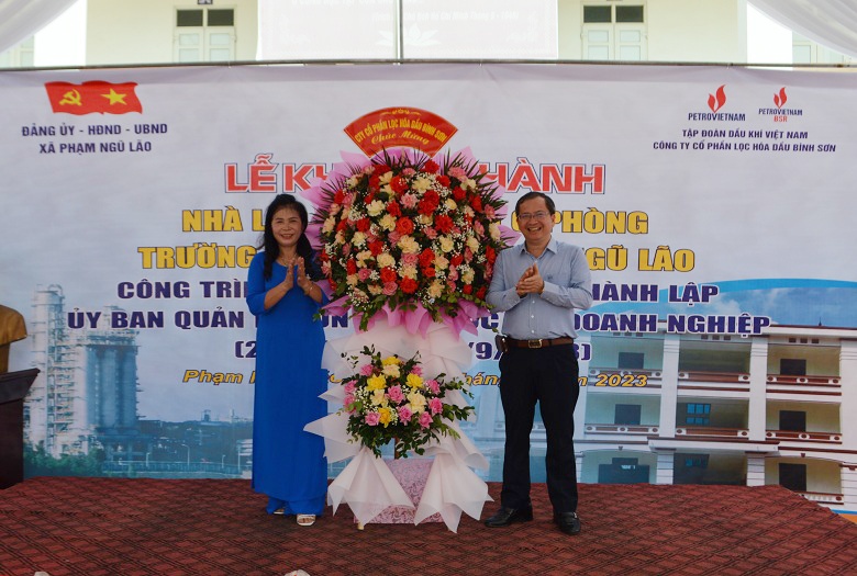 Ngày 27/8, UBND xã Phạm Ngũ Lão phối hợp với Công ty BSR tổ chức Lễ khánh thành Nhà lớp học 3 tầng 6 phòng học Trường Tiểu học Phạm Ngũ Lão. Tham dự buổi lễ có lãnh đạo Đảng ủy, HĐND, UBND xã Phạm Ngũ Lão; đồng chí Khương Lê Thành - Phó Bí thư Thường trực Đảng ủy, Thành viên HĐQT BSR; cùng tập thể ban lãnh đạo, thầy cô giáo Trường Tiểu học Phạm Ngũ Lão.