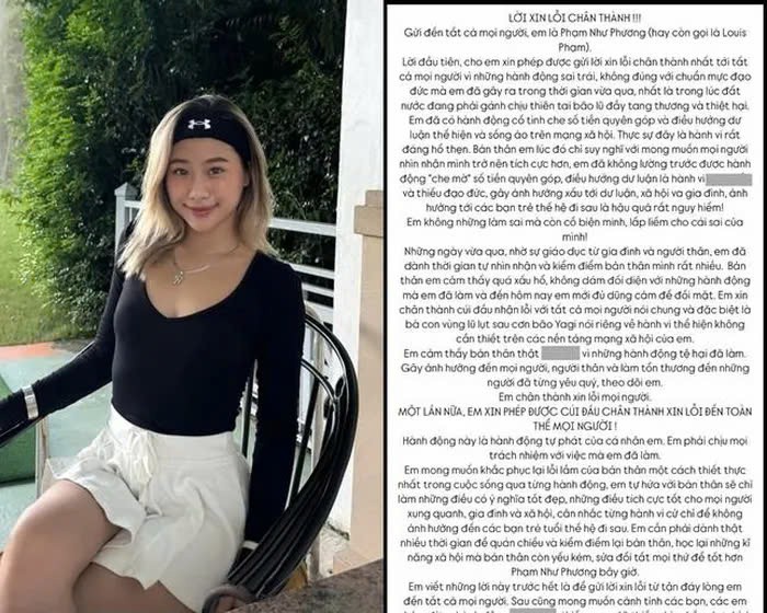 Tối 21/9, trên trang Facebook cá nhân của mình, cựu vận động viên thể dục dụng cụ Phạm Như Phương (còn được biết đến với cái tên Louis Phạm) đã đăng tải bức tâm thư với nội dung thừa nhận sai lầm và gửi lời xin lỗi chân thành nhất tới tất cả mọi người vì hành vi “phông bạt” làm giả bill chuyển khoản ủng hộ đồng bào vùng bão lũ của mình.