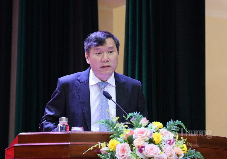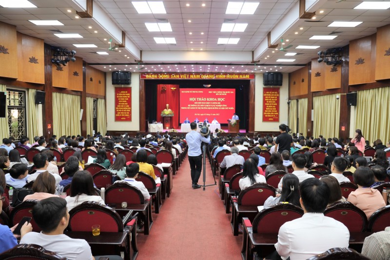 | PGS. TS Lê Văn Lợi, Phó Giám đốc Học viện Chính trị quốc gia Hồ Chí Minh trình bày báo cáo |