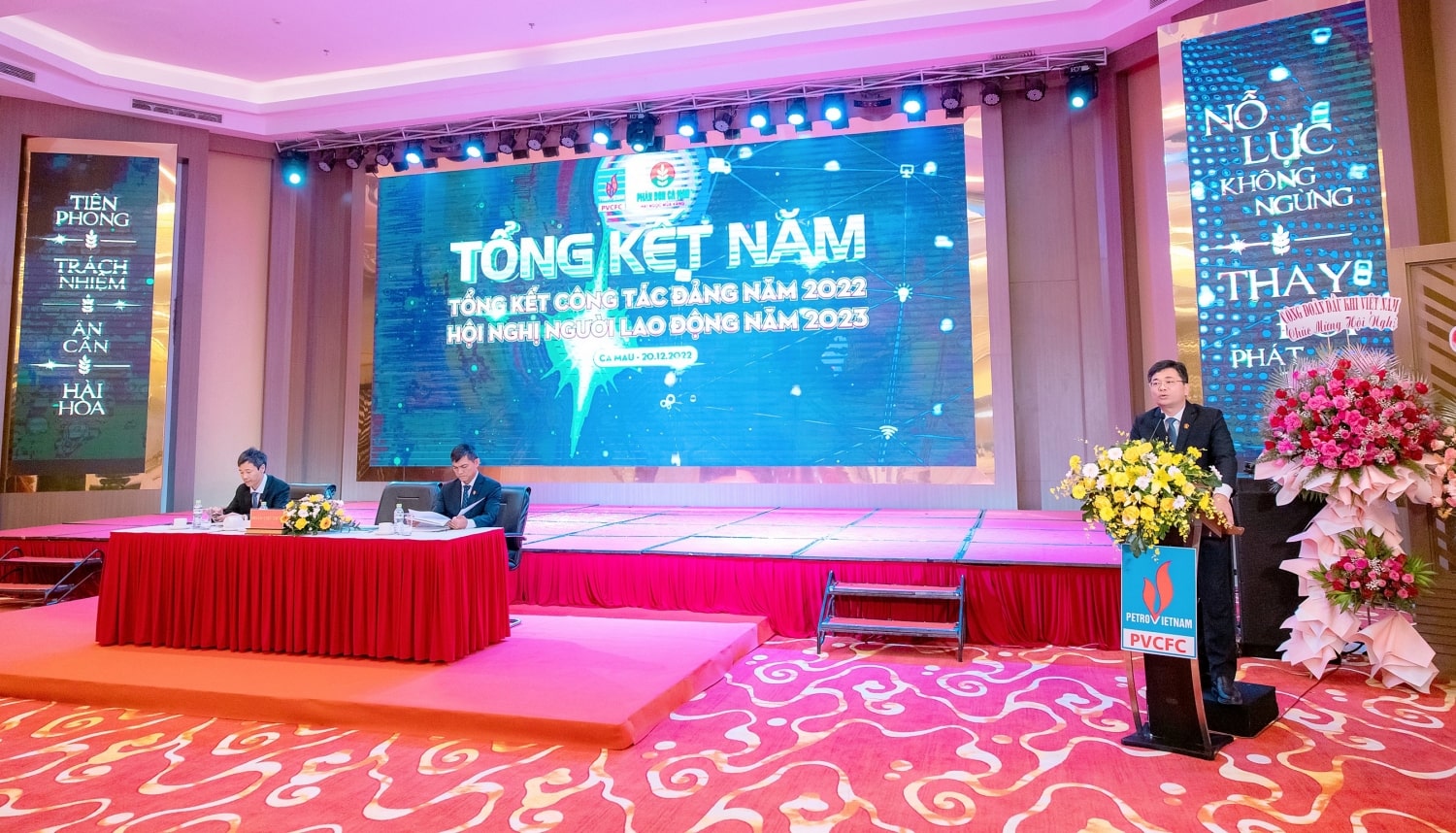 Ngày 20/12 tại TP. Cà Mau, Công ty Cổ phần Phân bón Dầu khí Cà Mau (PVCFC, HoSE: DCM) đã tổ chức thành công Hội nghị Tổng kết năm, Tổng kết công tác Đảng năm 2022 và Hội nghị Người lao động năm 2023. Tham dự và chỉ đạo Hội nghị có ông Bùi Minh Tiến - Ủy viên Ban thường vụ Đảng ủy, Thành viên HĐTV Tập đoàn Dầu khí Việt Nam; ông Nguyễn Mạnh Kha – Phó Chủ tịch Công đoàn Dầu khí Việt Nam; cùng đại diện lãnh đạo các Ban chuyên môn Tập đoàn. Ông Văn Tiến Thanh - Bí thư Đảng ủy, Tổng Giám đốc PVCFC; ông Trần Ngọc Nguyên – Phó bí thư Đảng ủy - Chủ tịch HĐQT Công ty và ông Nguyễn Đức Hạnh – Chủ tịch Công đoàn chủ trì hội nghị.