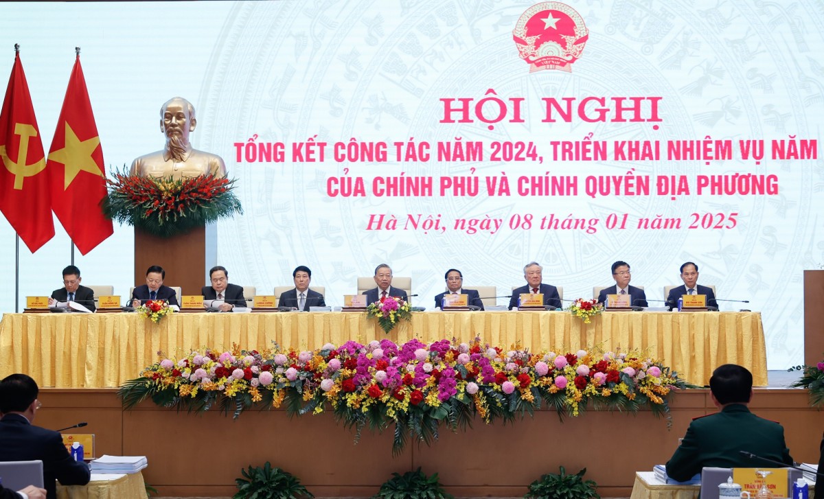 Sáng 8/1, Hội nghị tổng kết công tác năm 2024, triển khai nhiệm vụ năm 2025 của Chính phủ và chính quyền địa phương diễn ra tại trụ sở Chính phủ dưới sự chỉ đạo của Tổng Bí thư Tô Lâm, Chủ tịch nước Lương Cường, Thủ tướng Chính phủ Phạm Minh Chính, Chủ tịch Quốc hội Trần Thanh Mẫn.