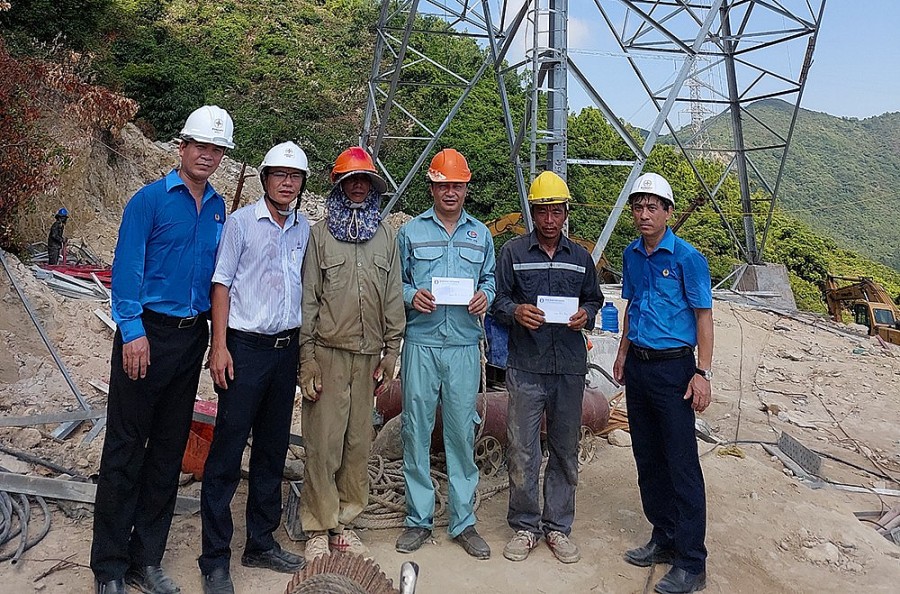 | Đoàn công tác thăm, tặng quà động viên lực lượng thi công |