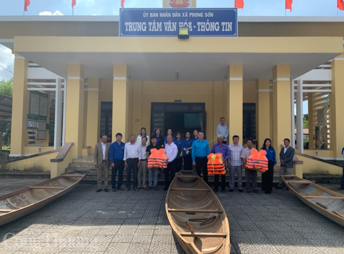| Tặng 3 thuyền cứu hộ 3 thôn bị ảnh hưởng bởi mưa lũ. Ảnh: Đăng Hải |