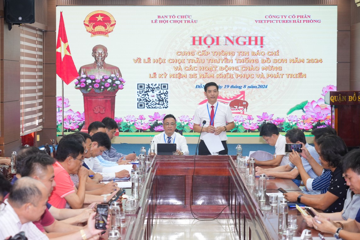Phát biểu tại buổi họp báo, ông Phạm Hoàng Tuấn, Phó Chủ tịch UBND quận Đồ Sơn cho biết lễ hội năm nay sẽ có 16 ông trâu tham gia thi đấu. Mỗi phường trong quận Đồ Sơn được đăng ký 2 suất trâu và 4 chủ trâu đạt giải Nhất, Nhì, đồng giải Ba năm 2023, mỗi người được đăng ký tham gia 1 suất trâu. Ban Tổ chức Lễ hội quận sẽ tiến hành kiểm tra trâu 3 đợt nhằm đánh giá chất lượng, mức độ an toàn của trâu chọi theo tiêu chí của Quy chế tổ chức Lễ hội. Phường có trâu không đủ tiêu chí tham gia phải có phương án thay thế nhằm đảm bảo đủ số lượng, chất lượng trâu tham gia Lễ hội. Hội nghị bốc thăm, ghép các cặp thi đấu, bốc thăm cửa Bắc - Nam, bốc thăm thứ tự các trận thi đấu dự kiến diễn ra vào ngày 29/8/2024.