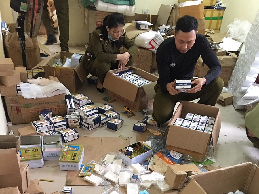 Đoàn kiểm tra đã tạm giữ tạm giữ hơn 4.000 lọ thuốc đông y trị viêm xoang, chữa phụ khoa; hơn 2.000 hộp thuốc đông y trị viêm họng, mất ngủ; hơn 1.500 gói đông y thảo dược trị bệnh trĩ, xương khớp; các loại thuốc trị viêm mũi, giảm cân, tiểu đường và gần 500 kg bột nguyên liệu, viên nén các loại đã bào chế sẵn không rõ nguồn gốc hoặc trên bao bì có in tiếng nước ngoài; nhiều vỏ hộp in sẵn, ghi nhãn bằng tiếng Việt Nam cùng nhiều tang vật liên quan khác.