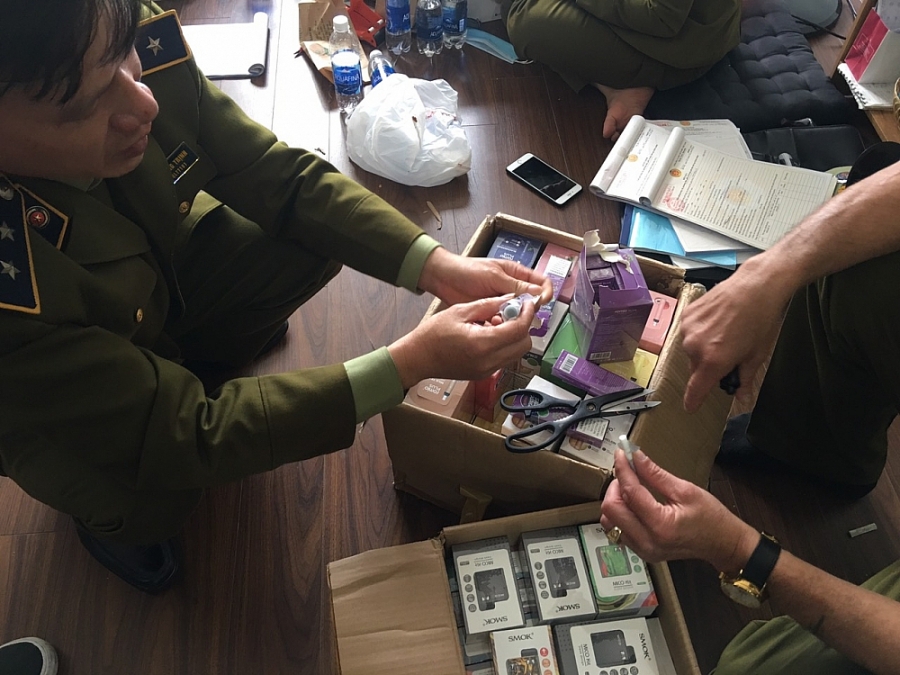 Tại thời điểm kiểm tra, Đoàn kiểm tra đã phát hiện quả tang tại cơ sở đang có 73 Máy đốt thuốc lá; 8.070 điếu thuốc lá điện tử; 3.043 lọ Tinh dầu thuốc lá điện tử.