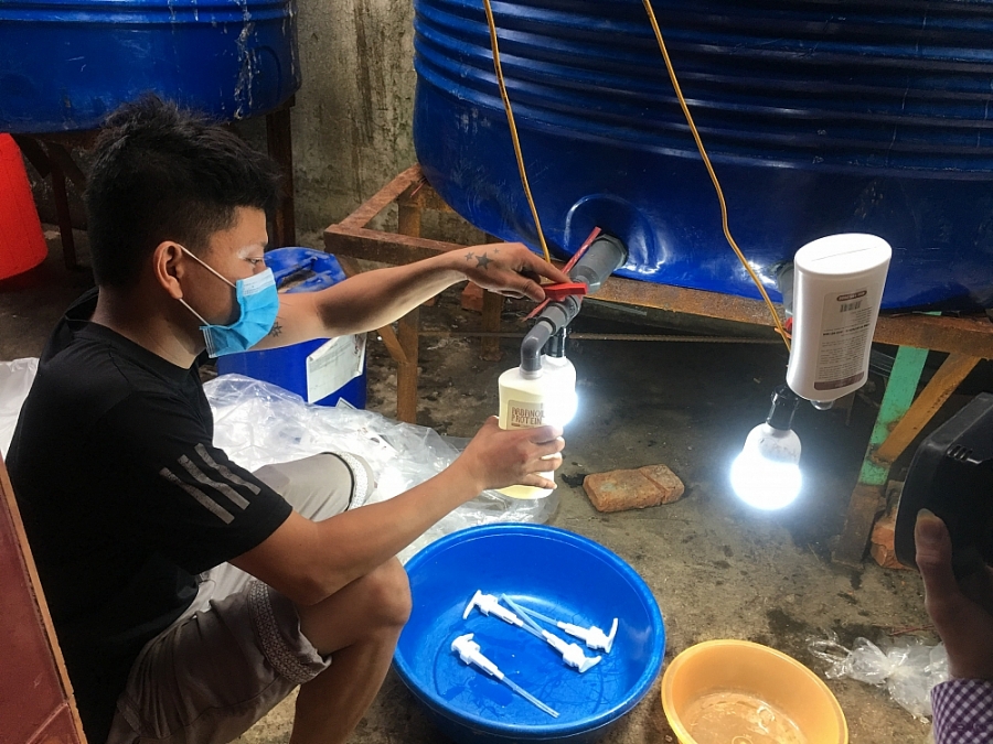 Tại thời điểm khám, Đoàn kiểm tra phát hiện cơ sở đang sản xuất, sang chiết dầu gội đầu nhãn hiệu Collagen Essence 800ml/chai. Chủ cơ sở chưa xuất trình được các giấy tờ có liên quan đến hoạt động sản xuất hàng hóa.