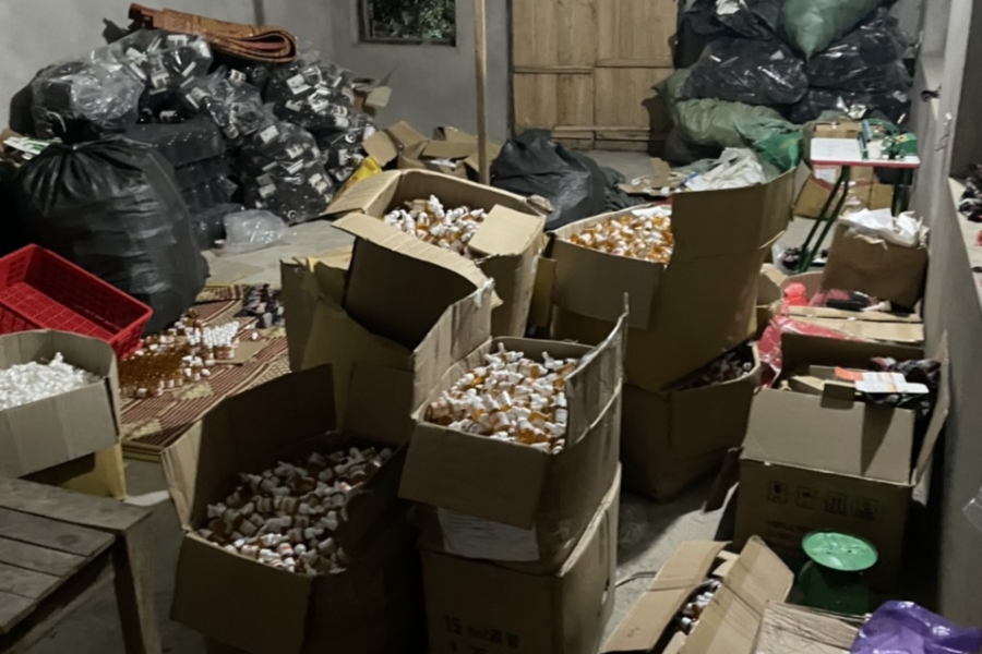Qua kiểm tra, lực lượng chức năng phát hiện tại kho hàng đang chứa số lượng lớn sản phẩm đã được chiết, rót vào các chai mang nhãn hiệu Coco Chanel. Ngoài ra, tại địa điểm này cũng phát hiện số lượng lớn sản phẩm mang nhãn hiệu Collagen X 12 Olive, Pink Lady Shower...