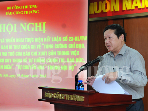 Phát biểu khai mạc hội nghị, Bí thư Đảng ủy, Tổng biên tập Báo Công Thương Nguyễn Hữu Quý đã điểm lại một số định hướng lớn của Đảng, Nhà nước đối với công tác quản lý báo chí, xuất bản trong thời gian qua. Đề cập đến những ưu điểm, hạn chế của công tác báo chí, xuất bản đối với việc phát huy vai trò của báo chí, xuất bản trong ngăn chặn, đẩy lùi suy thoái về tư tưởng, chính trị, đạo đức, lối sống, "tự diễn biến", "tự chuyển hóa" trong nội bộ tại Kết luận số 23-NQ/TW của Ban Bí thư, đồng chí Nguyễn Hữu Quý nhấn mạnh: "Trong giai đoạn hiện nay, Báo Công Thương cần phải nhận thức sâu sắc những thách thức để tìm giải pháp để thực hiện tốt nhiệm vụ chính trị là cơ quan ngôn luận của một Bộ kinh tế đa ngành. Theo đó, trước hết mỗi cán bộ lãnh đạo, mỗi cán bộ phóng viên, biên tập viên phải nêu cao tinh thần gương mẫu trong việc tuân thủ các quy định của Đảng, Nhà nước và Bộ Công Thương trong các hoạt động tác nghiệp. Đồng thời, có ý thức học hỏi, trau dồi nâng cao nghiệp vụ; đặc biệt là các loại hình truyền thông đa phương tiện, đáp ứng được yêu cầu nhiệm vụ trong giai đoạn phát triển mới của Báo".