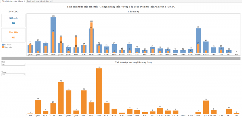 Bên cạnh KHPC, các đơn vị khác cũng đã thực hiện đạt và vượt kế hoạch về số sáng kiến đăng ký tham gia giai đoạn 2 chương trình là Công ty Điện lực Bình Định, 55 sáng kiến, 275% kế hoạch; Công ty Điện lực Quảng Nam: 55 sáng kiến, 161,8% kế hoạch; Công ty Điện lực Quảng Bình: 33 sáng kiến, 113,8% kế hoạch; Công ty Điện lực Đắk Nông: 12 sáng kiến, 120% kế hoạch. Trong đó, riêng trong tháng 11/2022, Công ty Điện lực Quảng Bình dẫn đầu với 50 sáng kiến đăng ký tham gia trong tháng.