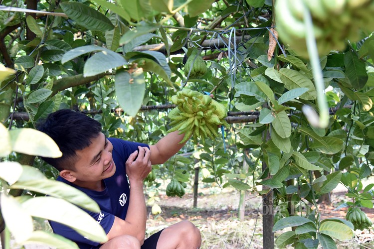 | Dù vất vả nhưng chủ vườn phật thủ Đắc Sở rất vui khi đến ngày thu hái |