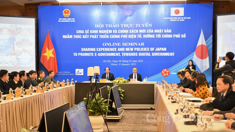 Tại hội thảo, các chuyên gia Nhật Bản chia sẻ về chính sách mới của Thủ tướng Nhật Bản Yoshihide Suga để phát triển Chính phủ số và kinh nghiệm số hóa dịch vụ và thủ tục hành chính tại Nhật Bản; xây dựng chính sách sử dụng trí tuệ nhân tạo… theo hướng cải cách quy chế một cách toàn diện, xóa bỏ quản lý hành chính theo chiều dọc, thực hiện cải cách đột phá.