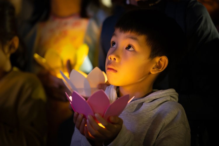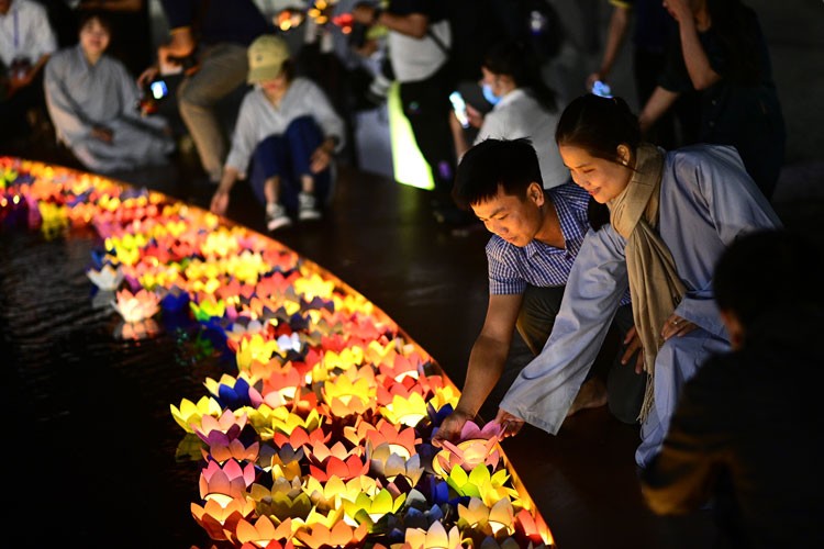 | Lễ hoa đăng là một nghi lễ rất được các Phật tử mong chờ để thắp sáng lòng từ bi hỉ xả, chiếu soi đưa con người trở về với tự tánh hiền lương. Anh Trần Đức Mạnh chia sẻ: “Ngồi giữa quảng trường rộng lớn ngay dưới chân tượng Phật Bà Tây Bổ Đà Sơn nhìn ra vùng đồng bằng mênh mông trù phú, những ngọn nến lung linh dường như giúp tôi soi sáng chính mình, nhìn sâu vào trong tâm thức, và cảm nhận được sâu sắc giá trị của bình an”. (Ảnh: Sun World Baden Mountain). |