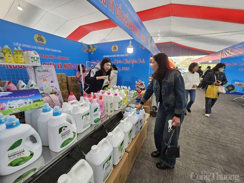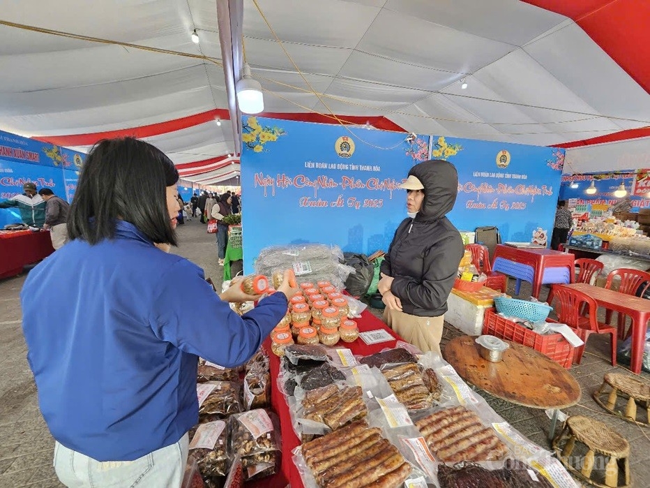 | "Ngày hội công nhân - Phiên chợ nghĩa tình" Xuân Ất Tỵ 2025 thu hút hàng nghìn công nhân, lao động đến từ các khu công nghiệp trên địa bàn TP. Thanh Hóa. Ảnh: Hoàng Minh. |