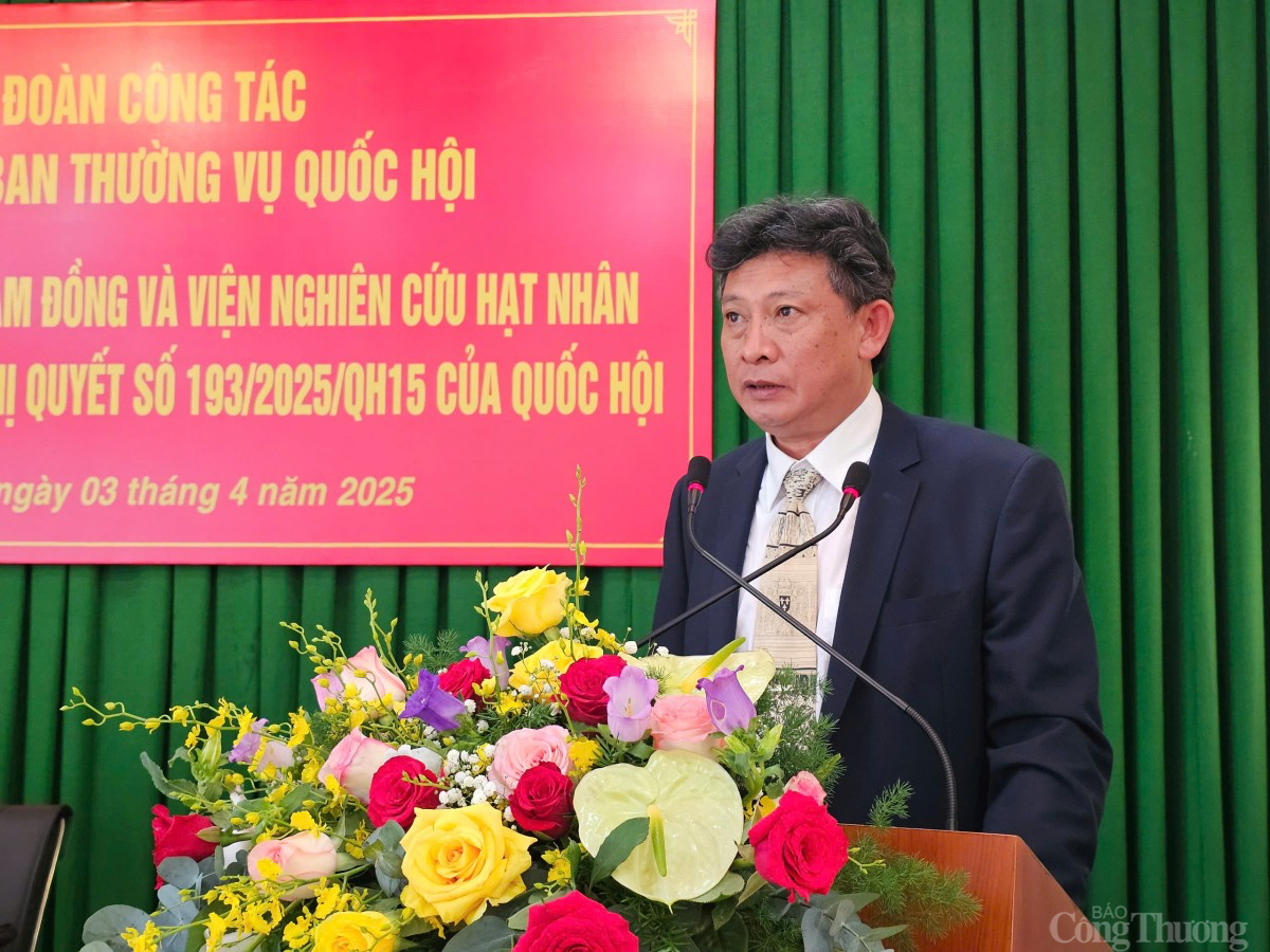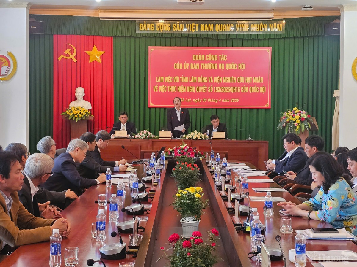 Kết luận buổi làm việc, Phó Chủ tịch Quốc hội ghi nhận và biểu dương những nỗ lực của tỉnh Lâm Đồng và Viện Nghiên cứu hạt nhân trong việc triển khai hai nghị quyết quan trọng nêu trên. Phó Chủ tịch Quốc hội kêu gọi các đơn vị cần quyết liệt hơn trong công tác triển khai, đảm bảo hiệu quả và trách nhiệm, không để xảy ra lãng phí trong quá trình thực hiện.