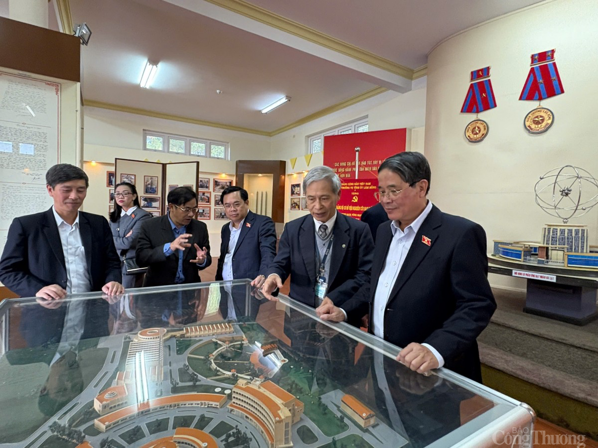 | Phó Chủ tịch Quốc hội Nguyễn Đức Hải (ngoài cùng bên phải) có mặt tại khu vực mô hình Lò phản ứng hạt nhân Đà Lạt. Ảnh: Lê Sơn |