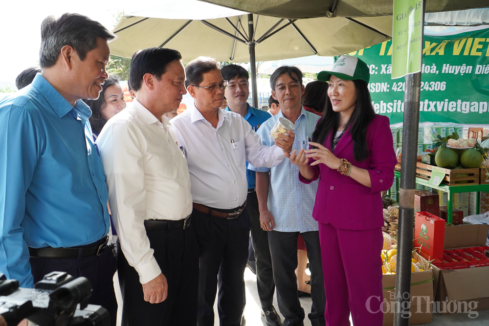 | Ông Nguyễn Khắc Định cùng đoàn công tác tham quan Chợ Tết Công đoàn. |