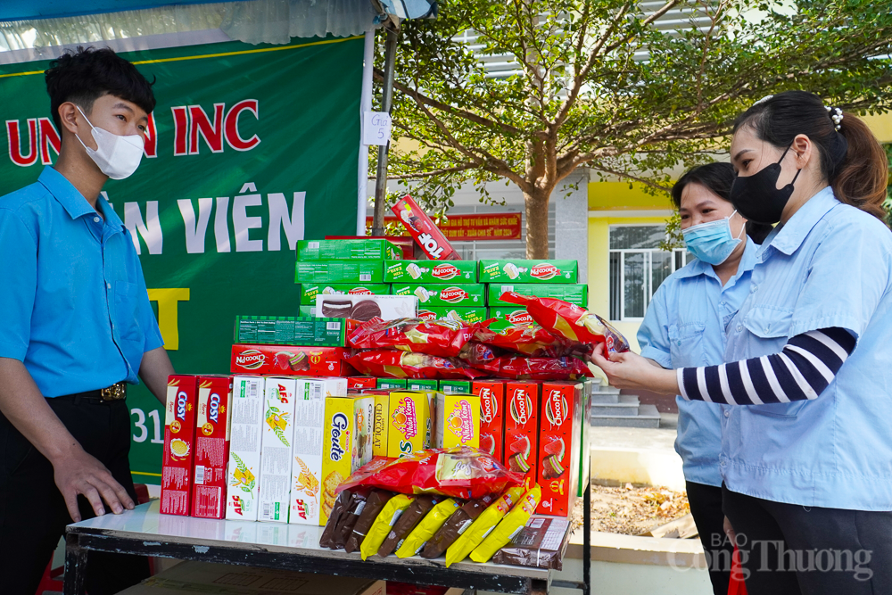 | Điểm Chợ Tết Công đoàn diễn ra tại Khu Công nghiệp Suối Dầu là 1 trong 5 địa điểm thuộc chương trình "Tết Sum vầy - Xuân chia sẻ" do LĐLĐ tỉnh Khánh Hòa cùng Công đoàn các sở, ngành tổ chức. Với nhiều hoạt động thiết thực như trao tặng quà hỗ trợ, chia sẻ cùng ĐV, NLĐ có hoàn cảnh đặc biệt khó khăn, bị tai nạn lao động, mắc bệnh hiểm nghèo, bị giảm giờ làm... Chợ Tết Công đoàn với các gian hàng 0 đồng, gian hàng giảm giá; hỗ trợ tư vấn sức khoẻ, siêu âm mắt miễn phí cho đoàn viên… |