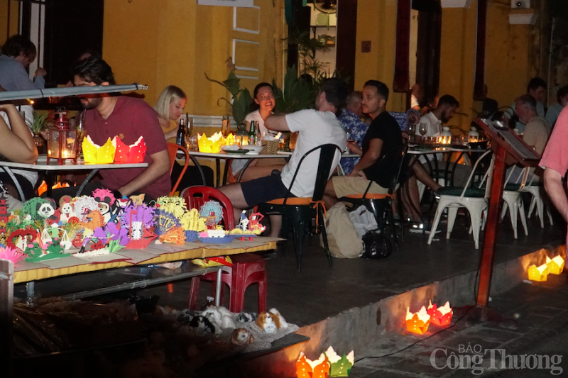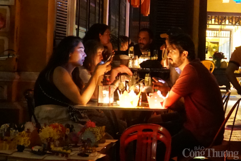 | Thay vì sử dụng điện, nhiều cơ sở kinh doanh đã sử dụng đèn hoa đăng, đèn cầy, đèn dầu để thắp sáng phục vụ du khách. |