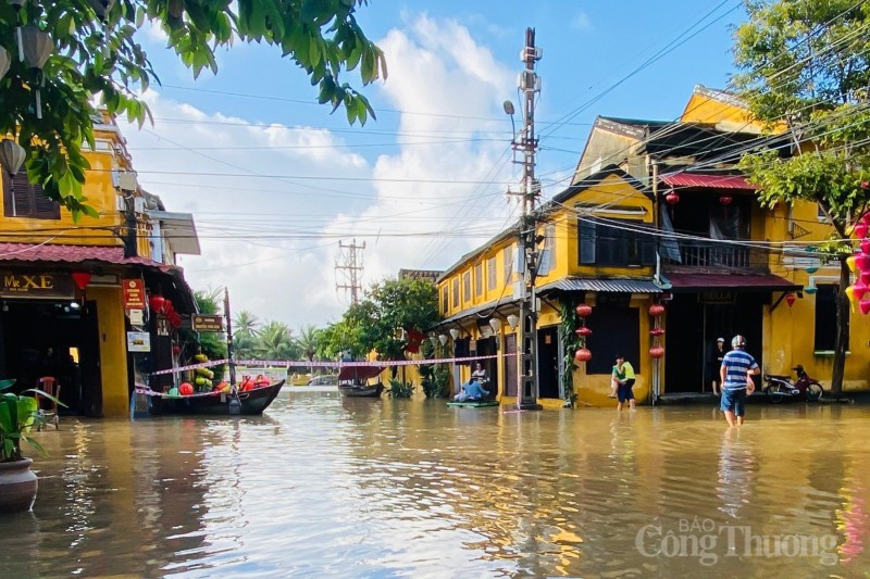 | Tại thành phố Hội An, theo ghi nhận sáng nay, một số tuyến đường như Bạch Đằng, Nguyễn Thái Học, Nguyễn Thị Minh Khai, Lê Lợi, Hoàng Văn Thụ vẫn đang bị ngập khá nặng. Trong đó, tuyến đường Bạch Đằng nằm bên sông Hoài vẫn còn ngập sâu từ 0,5-0,7m. |