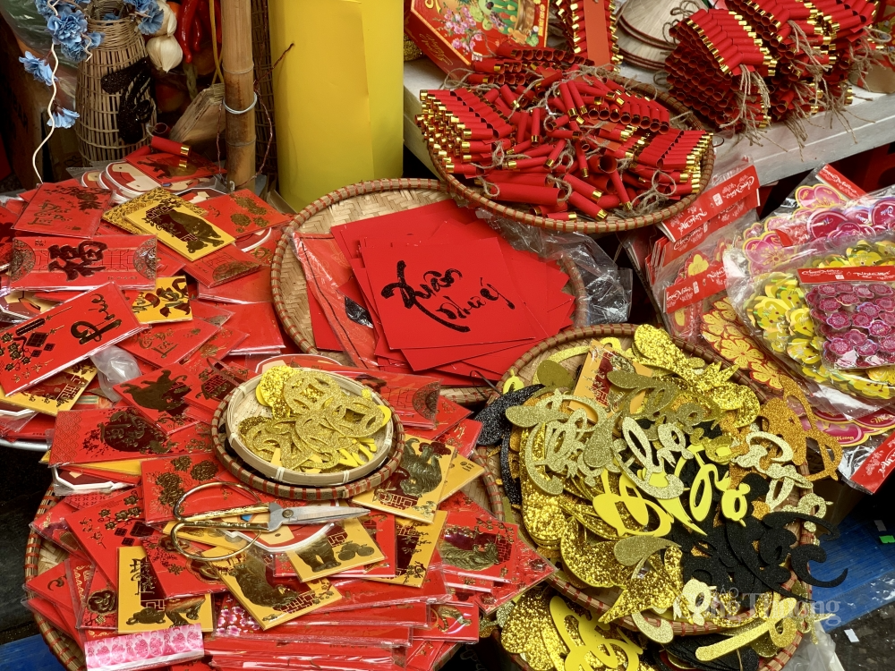 | Chị Thanh Hà (quận Hoàn Kiếm, Hà Nội) chia sẻ: "Để chuẩn bị trang trí nhà cửa trong dịp Tết, tôi tranh thủ đi mua đồ từ sớm để tạo không khí Tết. Đồ trang trí năm nay được làm khá bắt mắt và mang đậm tính truyền thống nên tôi rất thích" |
