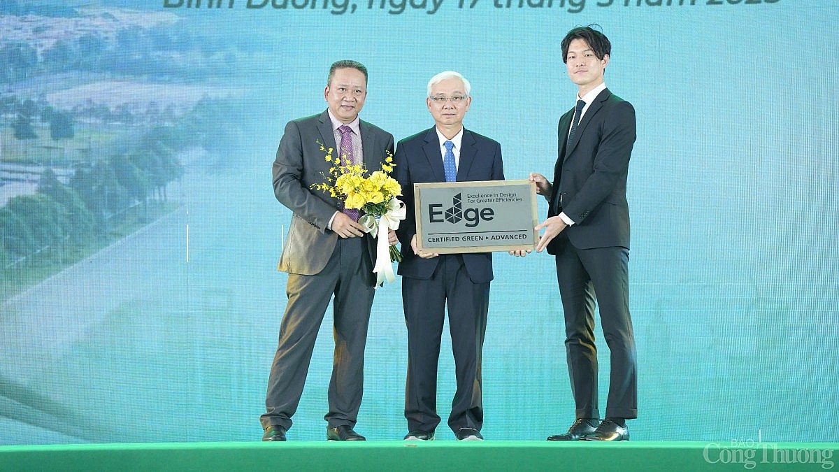 | Trao chứng nhận công trình xanh EDGE ADVACED cho Becamex IDC. |