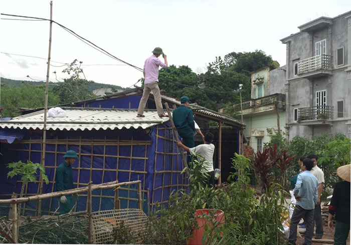 | Lực lượng xung kích các địa phương chằng chống nhà cửa cho các hộ dân |