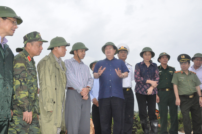 | Phó Thủ tướng Trịnh Đình Dũng kiểm tra tại tuyến đê xung yếu Hà Nam (TX Quảng Yên - tỉnh Quảng Ninh) |