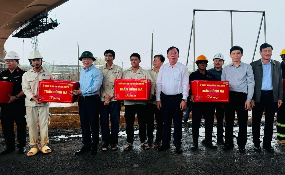 Cũng trong chuyến kiểm tra thực tế, Phó Thủ tướng Trần Hồng Hà và đoàn công tác Chính phủ cũng đã tặng quà động viên lực lượng thi công dự án.