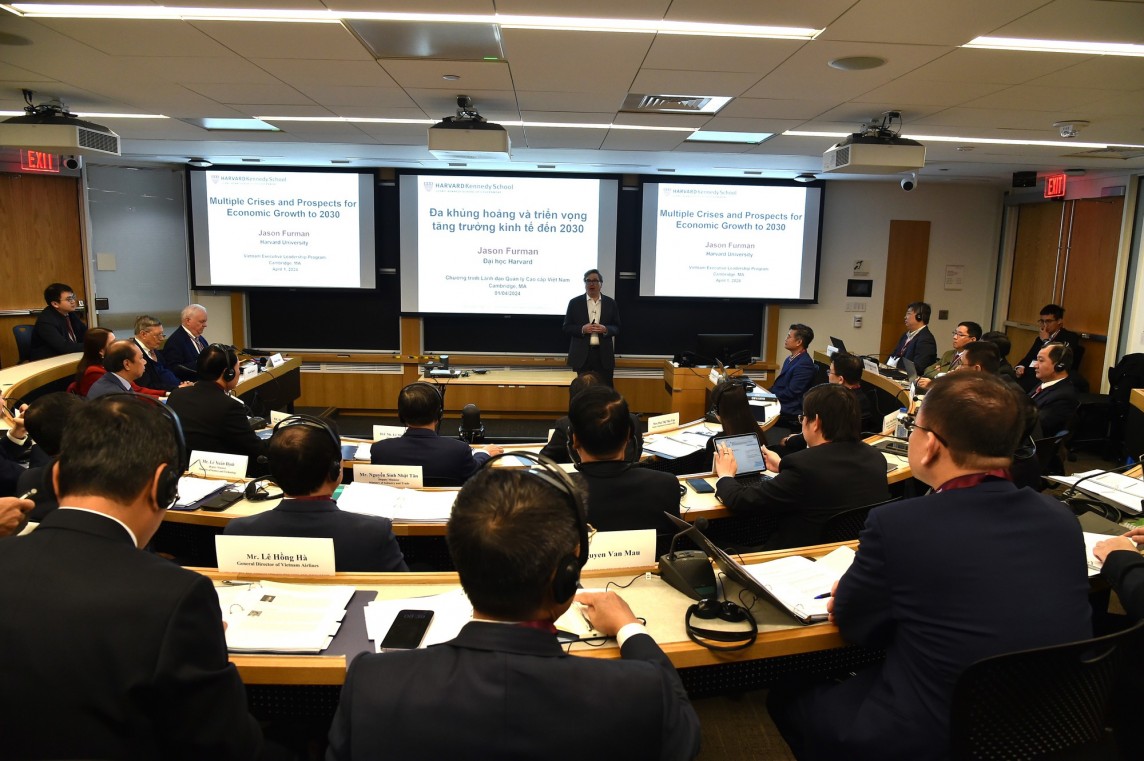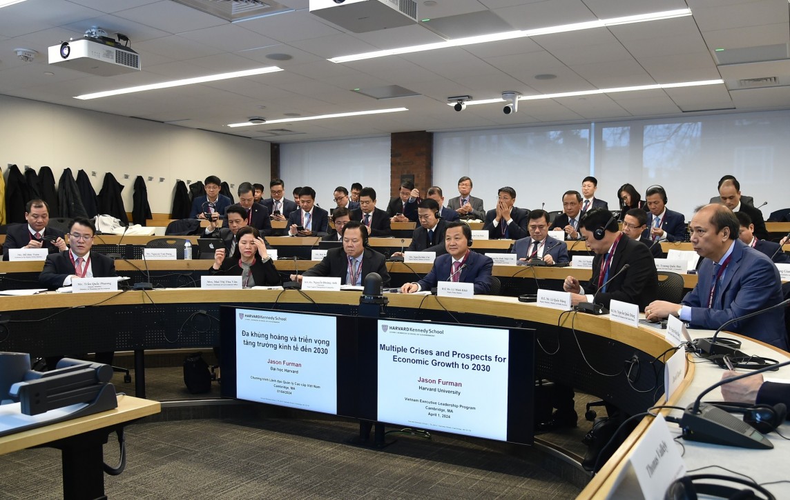 Ngày 1/4, tại Trường Đại học Harvard Kennedy, Phó Thủ tướng Lê Minh Khái và đoàn công tác đã nghe Giáo sư Thomas Vallely, Giám đốc Chương trình Việt Nam tại Đại học Harvard, đại diện Trường Đại học Harvard Kennedy giới thiệu chủ đề "Nền kinh tế toàn cầu và triển vọng tăng trưởng kinh tế của Việt Nam", với các phiên thảo luận: "Các cuộc khủng hoảng và triển vọng tăng trưởng kinh tế toàn cầu đến năm 2030, tác động đối với các nền kinh tế mới nổi" - diễn giả là Giáo sư Kinh tế Jason Furman, Trường Havard Kennedy, nguyên Chủ tịch Hội đồng Cố vấn Kinh tế của Tổng thống Barack Obama; "Những diễn biến kinh tế gần đây ở châu Á và tác động tới kinh tế toàn cầu và Việt Nam" - diễn giả là Giáo sư Quan hệ Quốc tế Anthony Saich, Trường Harvard Kennedy.
