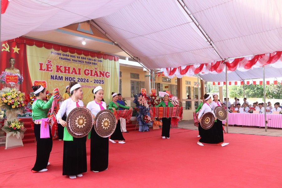 Tiết mục văn nghệ múa chiêng truyền thống của người Mường tại lễ khai giảng |