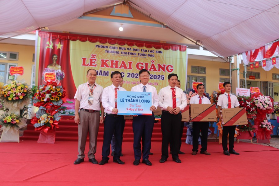 Nhân dịp này, Phó Thủ tướng Lê Thành Long cùng Đoàn công tác tặng 5 bộ máy tính cho Trường tiểu học và THCS Tuân Đạo; tặng 20 xe đạp cho học sinh nghèo vượt khó; trao 20 suất học bổng trị giá 1 triệu đồng cho học sinh.