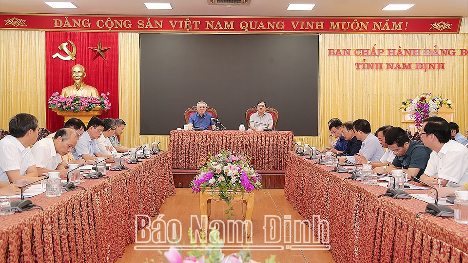 Phó Thủ tướng Thường trực Chính phủ Nguyễn Hoà Bình làm việc với UBND tỉnh Nam Định. Ảnh: Văn Huỳnh |
