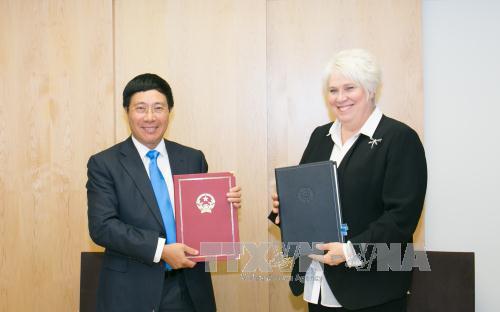 Phó Thủ tướng, Bộ trưởng Ngoại giao Phạm Bình Minh đề nghị Romania sớm công nhận quy chế kinh tế thị trường đối với Việt Nam, thúc đẩy các nước EU sớm phê chuẩn hiện định thương mại tự do Việt Nam-EU.