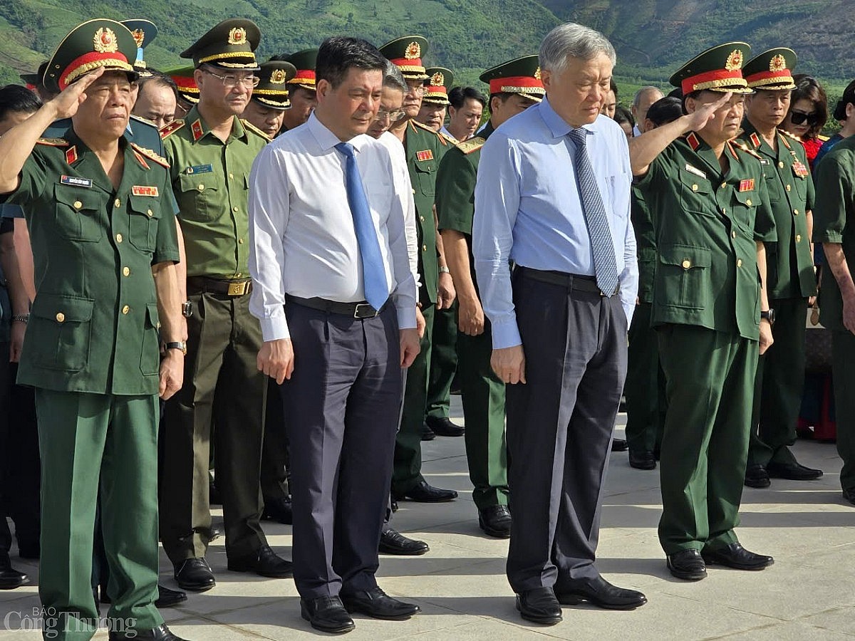 Phó Thủ tướng Thường trực Chính phủ Nguyễn Hòa Bình và các đại biểu dâng hương tưởng niệm các anh hùng liệt sĩ tại Khu tưởng niệm Vườn Gòn - Đá Bàn
