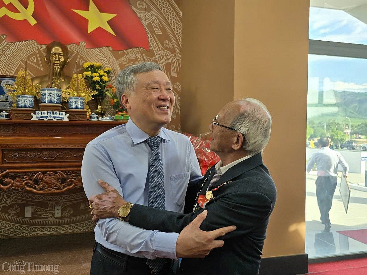 Phó Thủ tướng Thường trực Chính phủ Nguyễn Hoà Bình xúc động khi gặp cựu chiến binh Tiểu đoàn 59 trong thời kỳ kháng chiến chống Pháp