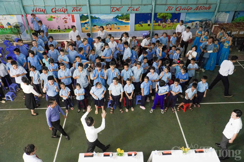 | Phó Thủ tướng Trần Lưu Quang thăm hỏi thầy cô Trung tâm Phục hồi chức năng - Giáo dục trẻ em khuyết tật tỉnh Khánh Hoà. |