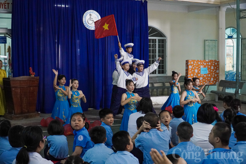 | Tiết mục văn nghệ chào mừng Phó Thủ tướng đến thăm Trung tâm của các em khuyết tật đang theo học tại đây. |